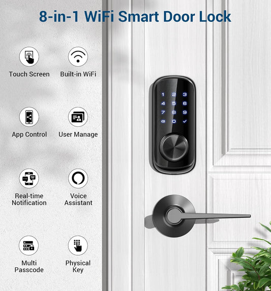 قفل ذكي واي فاي للدخول بدون مفتاح من TEEHO: لوحة مفاتيح للتحكم عن بعد في التطبيق مع واي فاي مدمج - قفل باب دخول بدون مفتاح للباب الأمامي - قفل تلقائي - لوحة مفاتيح تعمل باللمس - شهادة BHMA - IP65 مقاوم للماء